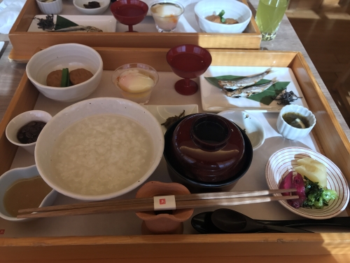 鯛のお出汁がついた朝粥セット。