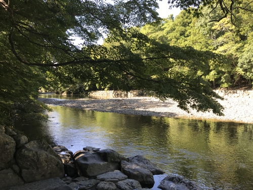 赤福氷を食べ終えたあとは土産店や五十鈴川沿いを散策。