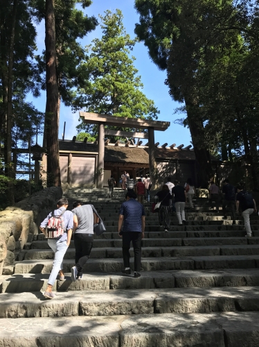 内宮には天照坐皇大御神(あまてらしますすめおおみかみ)、一般的に言われる天照大御神が祀られています。鳥居の中に入ったあとは撮影禁止のため階段下から。