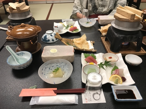 海鮮メインのフルコースをいただき、温泉に。