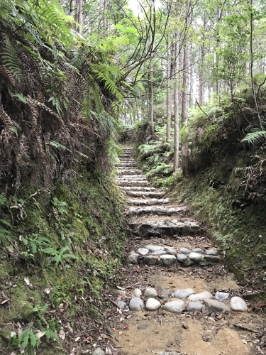 山の中の砂利道やところどころ石畳の残った道を歩くこと2時間……。