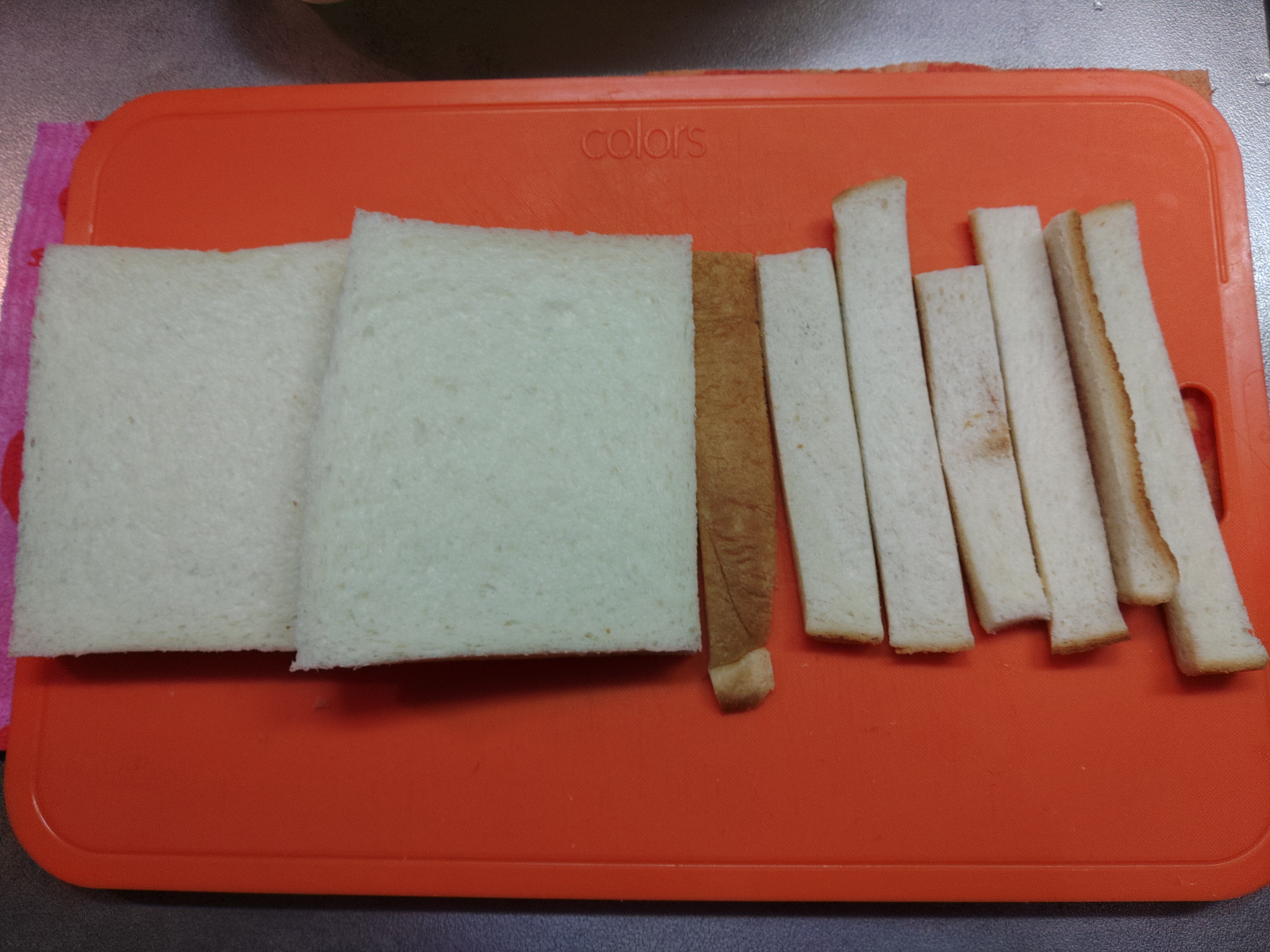 さてまずは、食パンの耳を切り落とします。今回重ねて厚みを出すので2枚です。