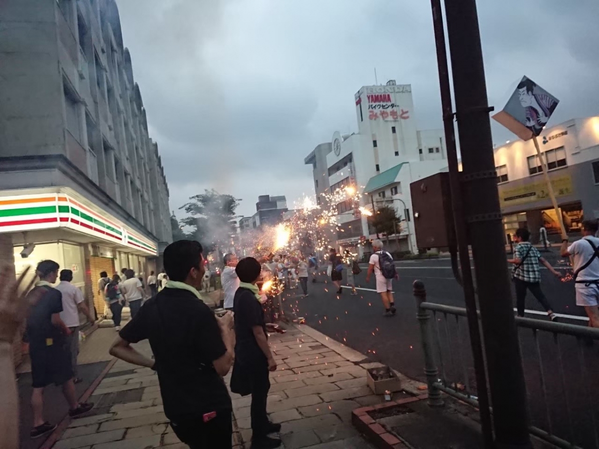 道路で爆竹や花火を鳴らしながら