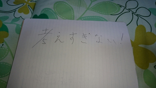 これからは考え過ぎないようにしていきたいと思います。