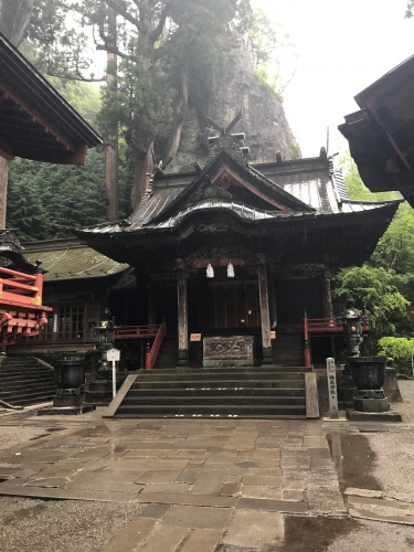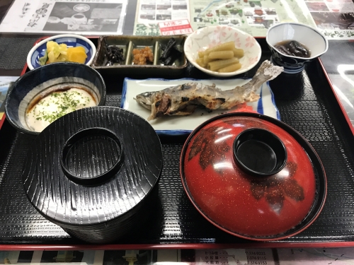 参道入口の食堂で定食を頂きつつバスの時間まで雨宿り。