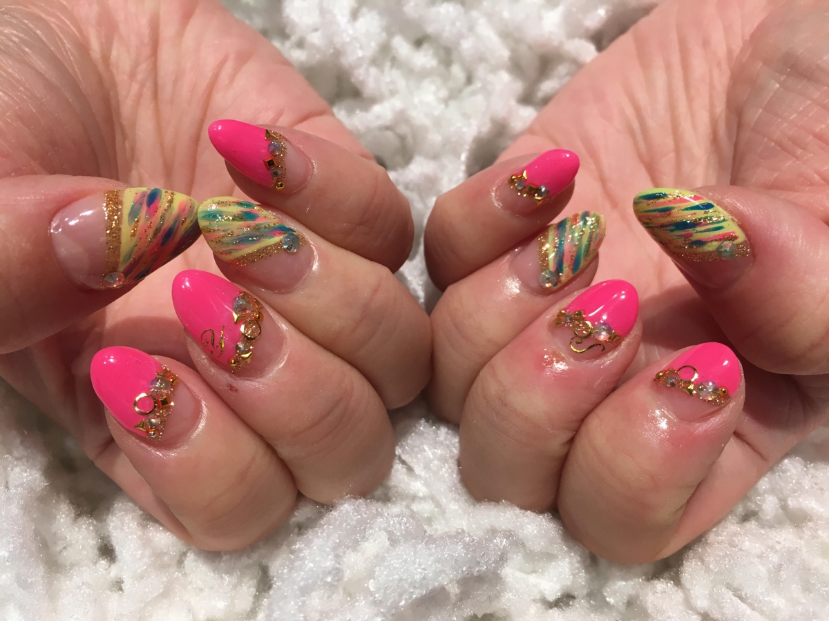 かわいいピンクつかったんだけど、来月の誕生日ネイルに向けて若干地味だなぁ・・・と、つぶやいたら